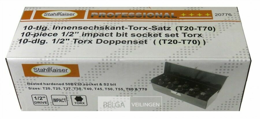 Professionele Kracht torx inbusdop set 1/2'' 10 dlg-zeer geschikt voor machine gebruik en of handmatig-metalen opbergkist