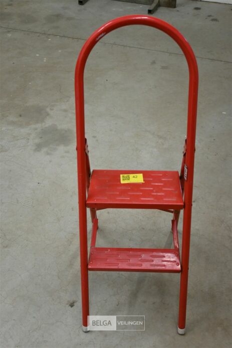 Trapladder rood metaal, hoogste trede op 50 cm en totale hoogte 93 cm