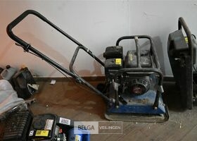 Trilplaat HBM, 6,5 Pk, 15000 N, netto gewicht 108 Kg, 4-takt benzinemotor 4kw, nog werkend.
