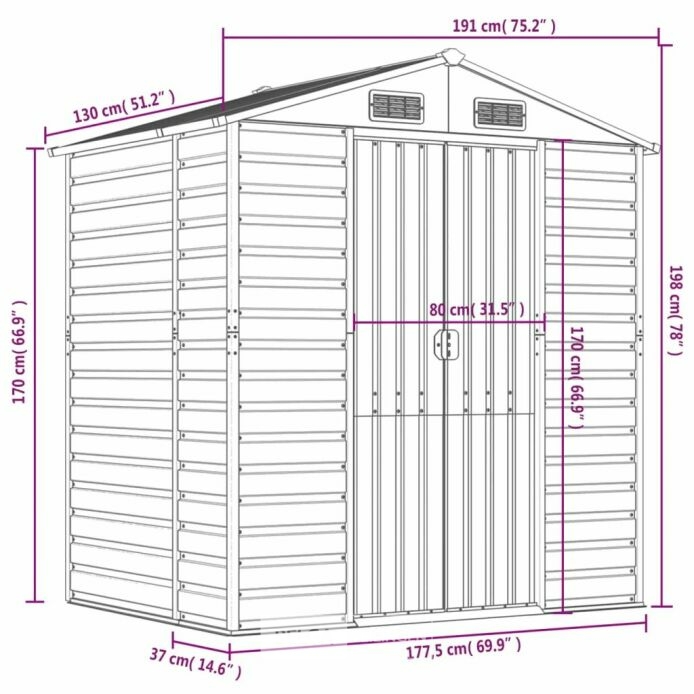 Robuust materiaal: het tuinschuurtje is gemaakt van gegalvaniseerd staal, dat roestvorming voorkomt en lang meegaat. Staal is een buitengewoon hard en sterk materiaal. Het biedt stevigheid en stabiliteit. Galvanisatie biedt een betere bescherming tegen corrosie en is handig voor producten die buiten of in ruwe omgevingen worden gebruikt.