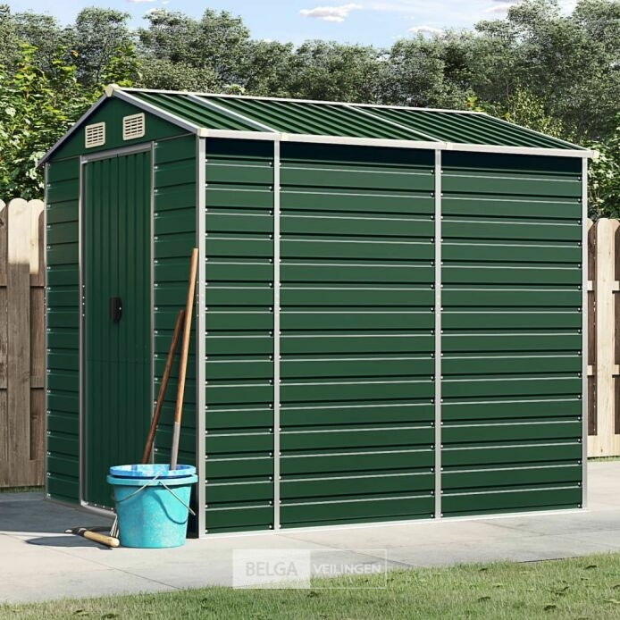 Schuin ontwerp: dankzij het schuine dak loopt water er ongehinderd vanaf.Totale afmetingen: 191 x 215 x 198 cm (B x D x H) kleur groen