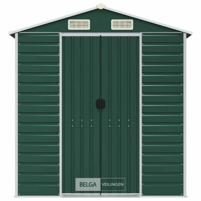 Schuin ontwerp: dankzij het schuine dak loopt water er ongehinderd vanaf. Totale afmetingen: 191 x 215 x 198 cm (B x D x H) kleur groen