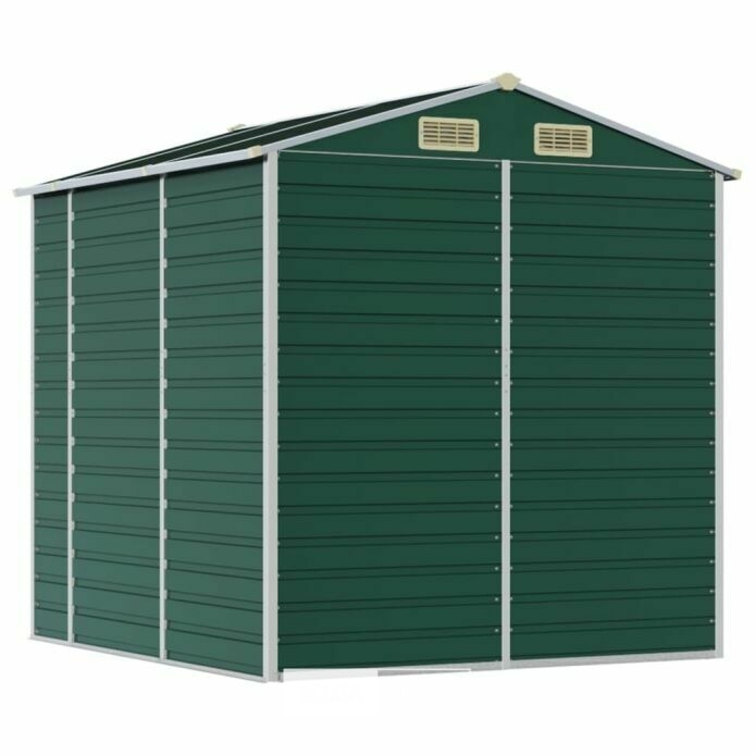Tuinhuisje: lichtbruin gegalvaniseerd staal, totale afm: 191x215x198 cm (BxDxH), kleur hout, afm deur: 80x170 cm (BxH). Robuust materiaal: het tuinschuurtje is gemaakt van gegalvaniseerd staal, dat roestvorming voorkomt en lang meegaat. Staal is een buitengewoon hard en sterk materiaal. Het biedt stevigheid en stabiliteit. Galvanisatie biedt een betere bescherming tegen corrosie en is handig voor producten die buiten of in ruwe omgevingen worden gebruikt.