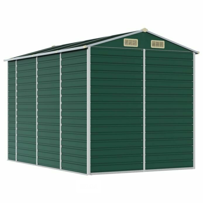 Tuinhuisje: lichtbruin gegalvaniseerd staal, totale afm: 191x300x198 cm (BxDxH), kleur hout, afm deur: 80x170 cm (BxH). Robuust materiaal: het tuinschuurtje is gemaakt van gegalvaniseerd staal, dat roestvorming voorkomt en lang meegaat. Staal is een buitengewoon hard en sterk materiaal. Het biedt stevigheid en stabiliteit. Galvanisatie biedt een betere bescherming tegen corrosie en is handig voor producten die buiten of in ruwe omgevingen worden gebruikt.