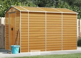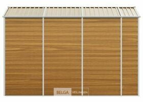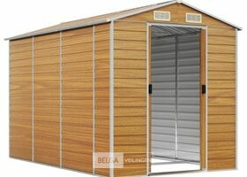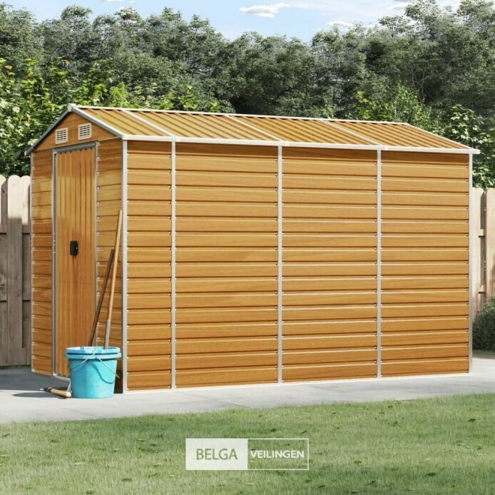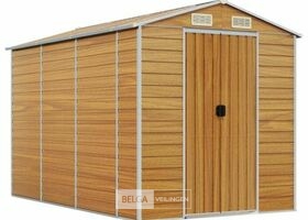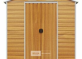 Tuinhuisje: lichtbruin gegalvaniseerd staal, totale afm: 191x300x198 cm (BxDxH), kleur hout, afm deur: 80x170 cm (BxH). Robuust materiaal: het tuinschuurtje is gemaakt van gegalvaniseerd staal, dat roestvorming voorkomt en lang meegaat. Staal is een buitengewoon hard en sterk materiaal. Het biedt stevigheid en stabiliteit. Galvanisatie biedt een betere bescherming tegen corrosie en is handig voor producten die buiten of in ruwe omgevingen worden gebruikt.