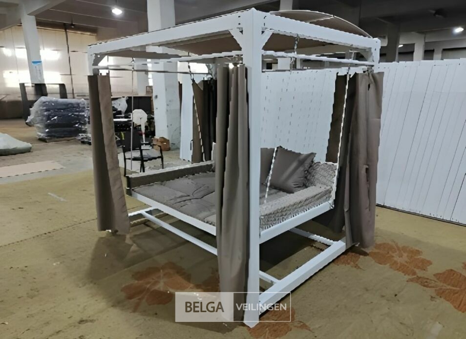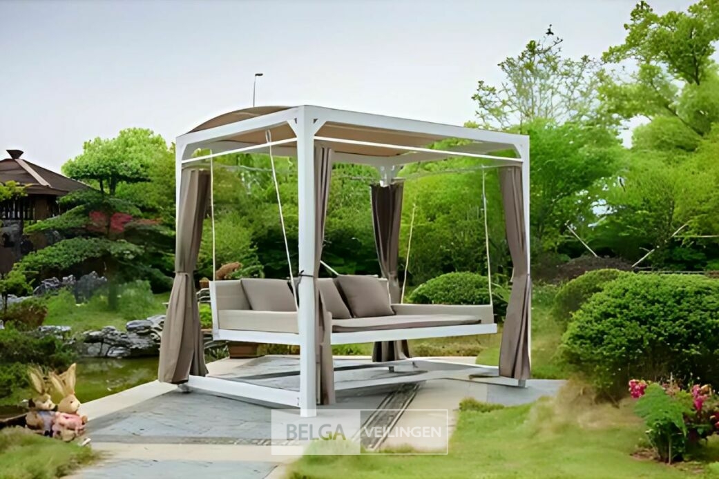 Tuinset G6.1021 : Stalen schommelbed met overkapping en gordijnen, Dikte kussen: 6 cm afm: 236 x 180 x 220 cm
