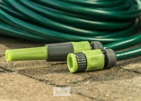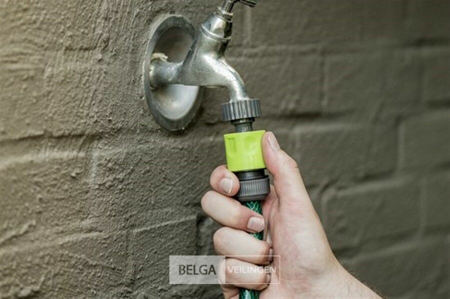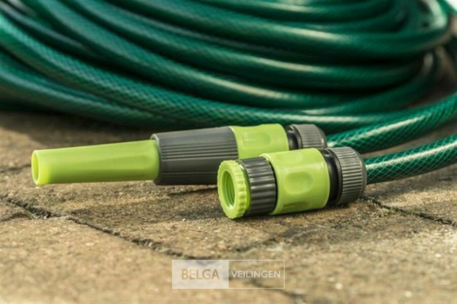 Tuinslang 1/2" 15 m met koppelset - maximale druk 8 bar - inclusief 1 tap-adapter - 1 aansluiting zonder stop en 1 sproeistuk.-nieuw in verpakking