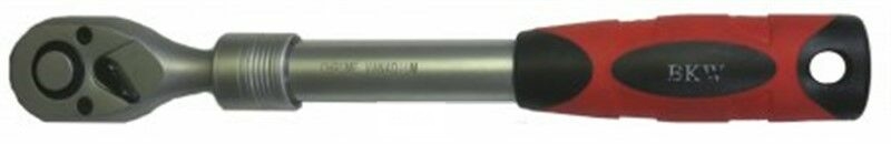 Ideaal als wielsleutel in wagen - Ratel verstelbaar in 3 posities, fijne vertanding, 72 tands, met snelsluiting, drukknop en 2 componenten handgreep, anti-slip. Lengte verstelbaar van 305 tot 445 mm. Aandrijving 1/4" (6,3).