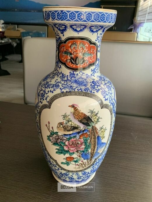 Vaas met Chinees motief, aardewerk. Hoogte 50 cm ø 25 cm