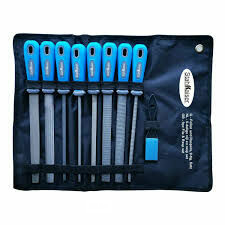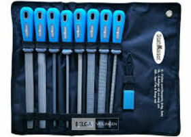 9-dlg. Vijl en rasp set-8" rasp, plat, half rond en rond. 8" vijlen, plat, half rond, round, driehoekih en vierkant, met vijl reinigings borstel-