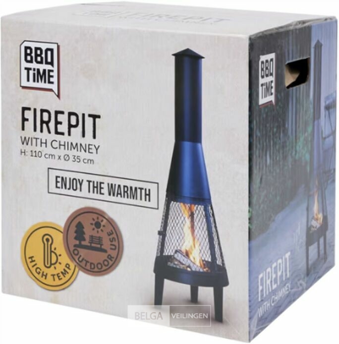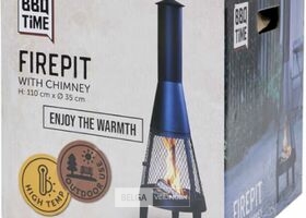 Vuurkorf met schoorsteen - Zwart - 110 x 35 cm -hittebestendig metaal-past in iedere ruimte-nieuw in doos