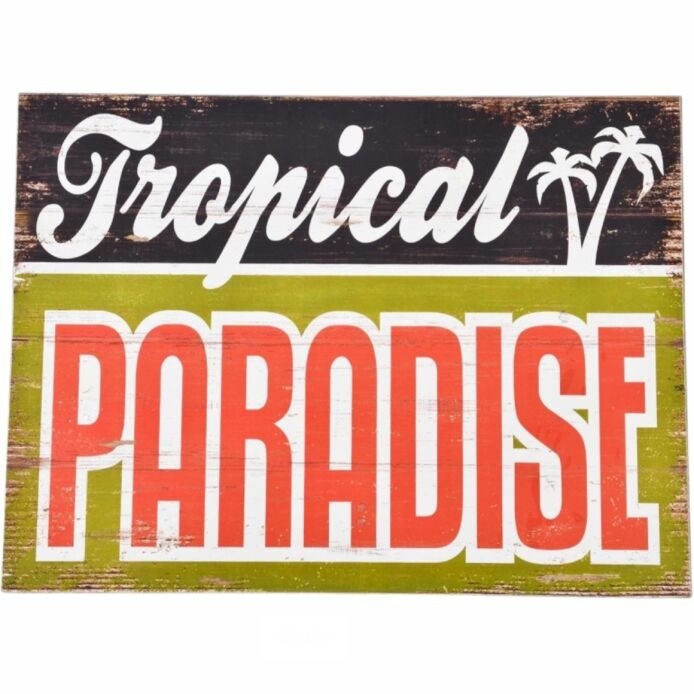 Wandbord Tropical Paradise 40 x30cm -achterzijde ophangoog-mooi retro look- ideaal in mancave