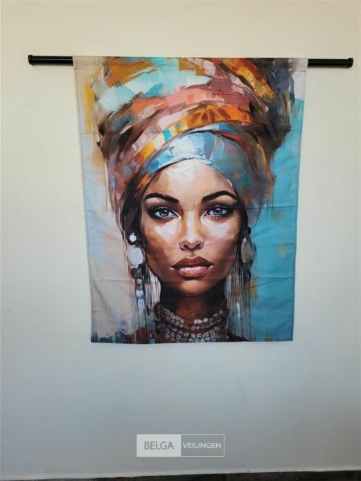 Wandkleed Vrouw met hoofddoek - maten wandkleed 87x115 cm