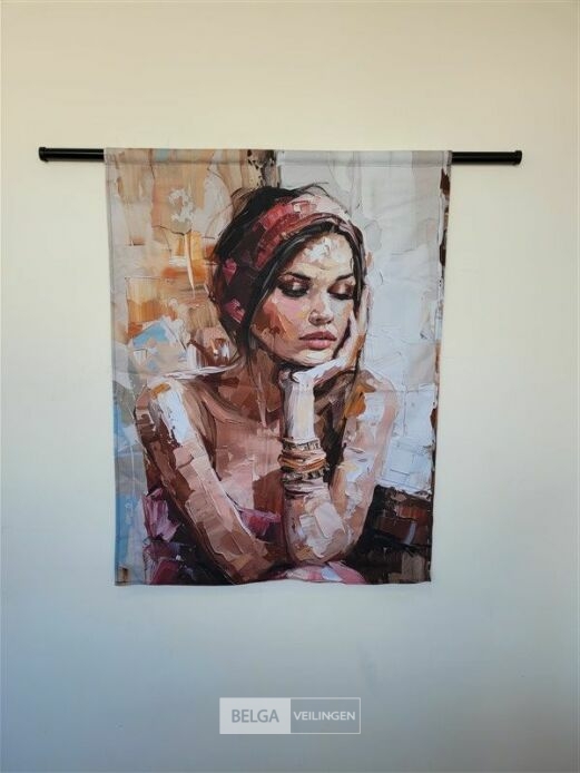 Wandkleed Vrouw met hand onder kin - maten wandkleed 87x115 cm