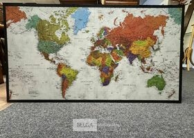 Wereldkaart afm. ±135 x 75 cm + schilderij – man met gitaar – afm. ± 110 x 80 cm