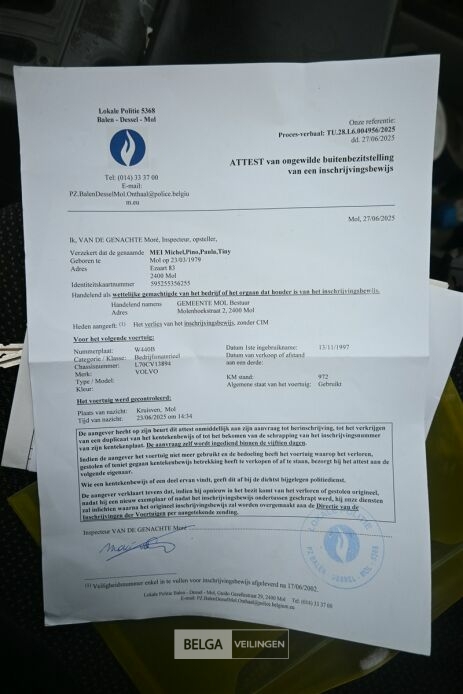 Documenten: | Attest politie voor ontbreken van de boorddocumenten |
