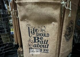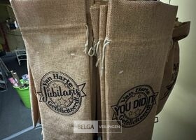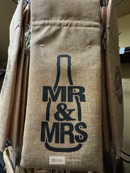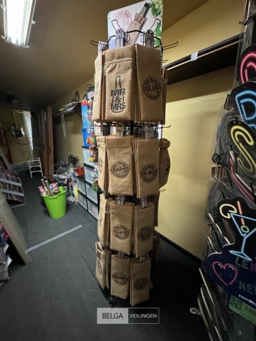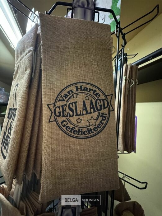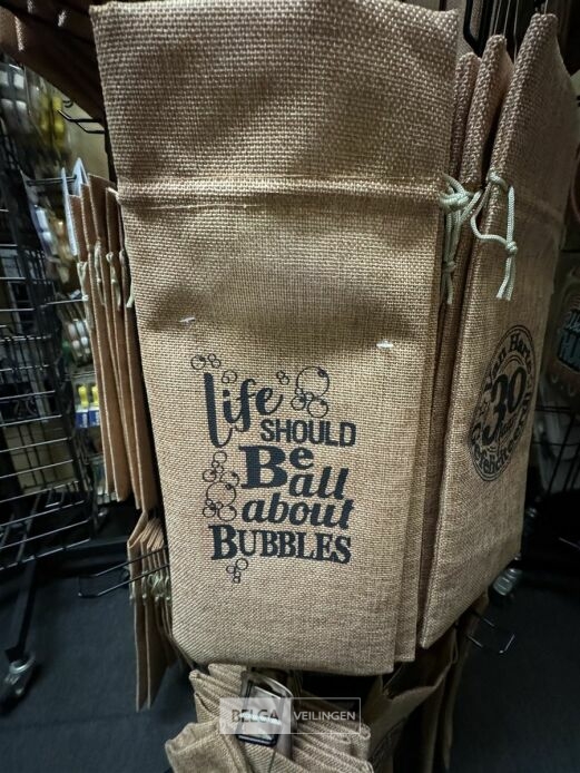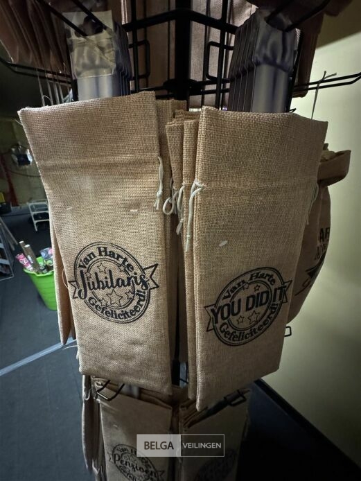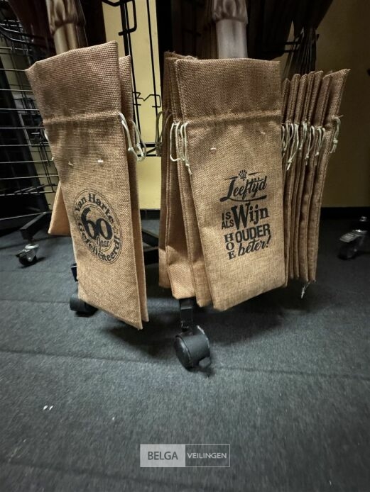 Wijnzakjes met verschillende tekstopschriften incl. rek