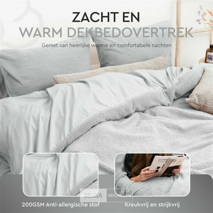 Warm wollig dik teddy dekbedovertrek -lichtgrijs -200x200cm inclusief 2 kussenslopen 60x70cm-nieuwste rage onder dekbedovertrekken