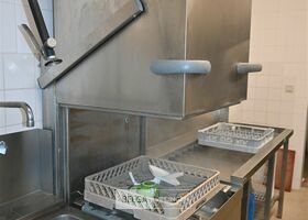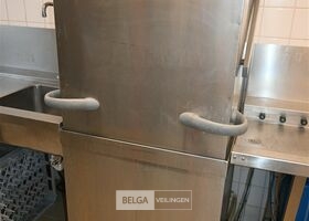 WINTERHALTER GS 515 industriële doorschuif vaatwasmachinelijn (400x76x160) + inox afzuigkap (100x100x40cm), in goed werkende staat