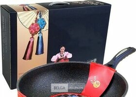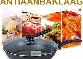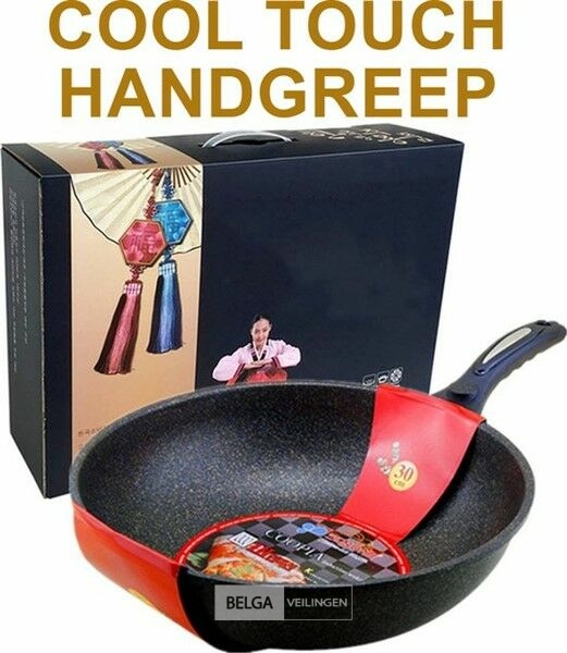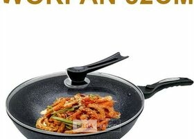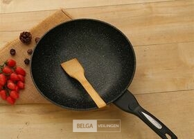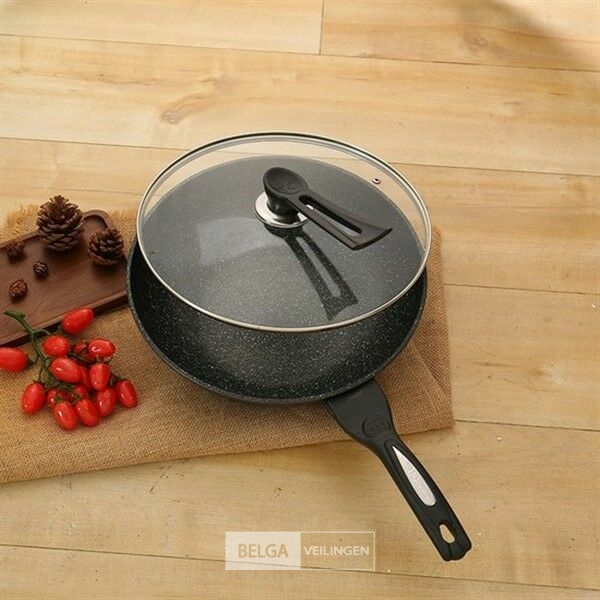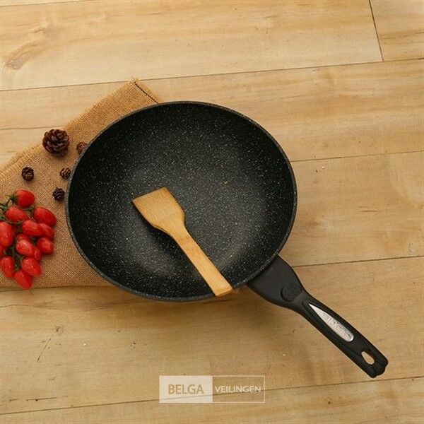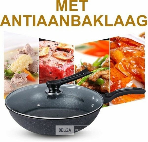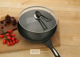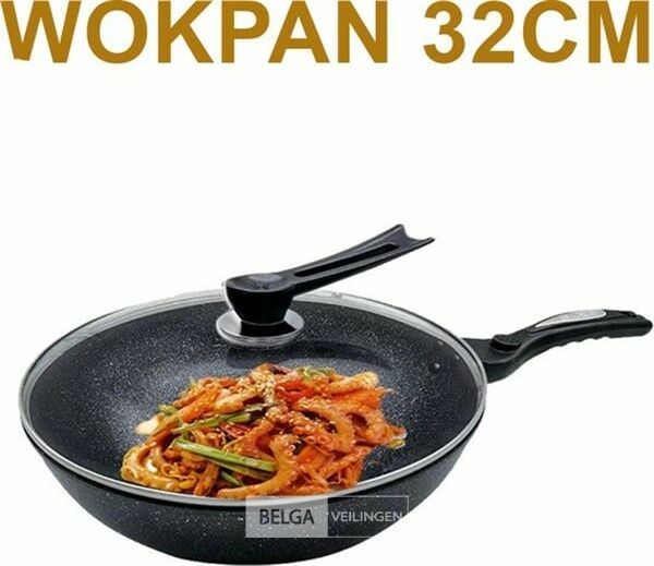 Wokpan 32cm met vlakke bodem-geschikt voor alle warmtebronnen ook inductie- wokpan met deksel en spatel