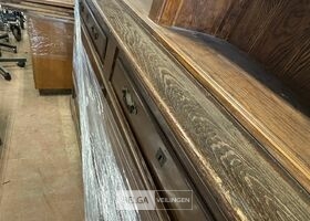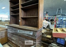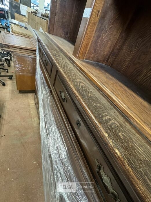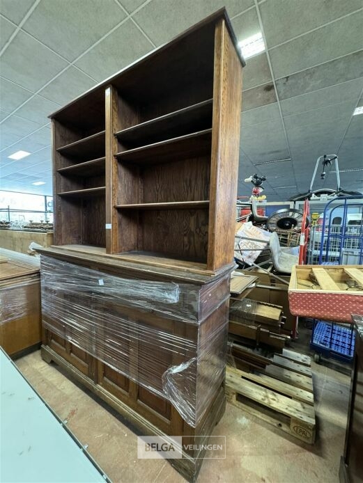 XL-bibliotheekkast van massief eikenhout met 5 leggers en 2 lades
