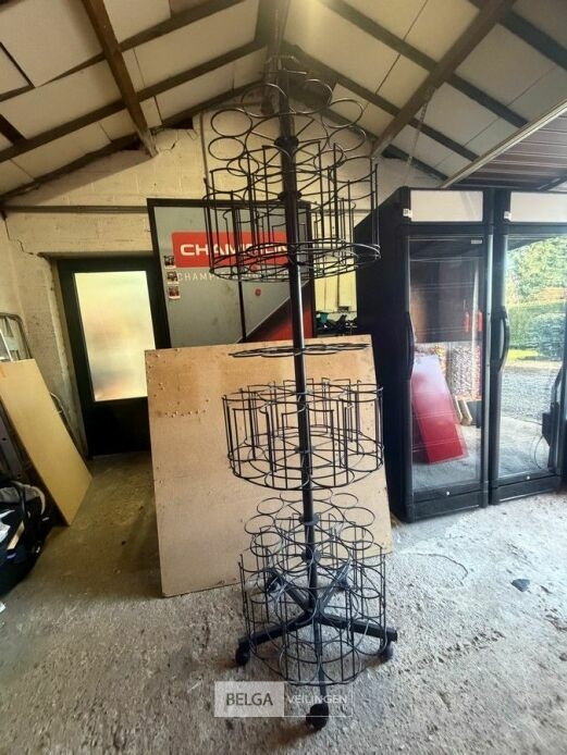 Zwart presentatierek snoep/flessen op wielen, metaal, afm. ± 200 cm , Ø 50 cm
